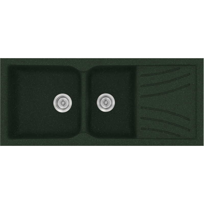 Νεροχύτης Κουζίνας Συνθετικός Granite Green 115*50 εκ. Ένθετος Eρμάριο 80 εκ. Δύο γούρνες & Ποδιά Sanitec Electric 323