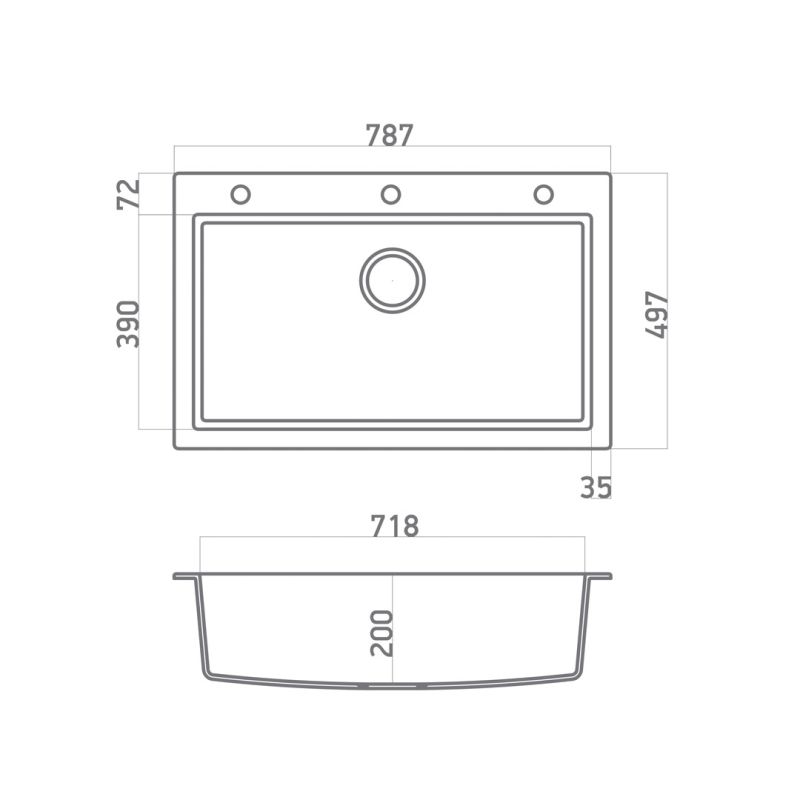 Νεροχύτης Κουζίνας Συνθετικός Metallic IIce 79x50 εκ. Ένθετος Eρμάριο 80 εκ.Sanitec Classic 333-14