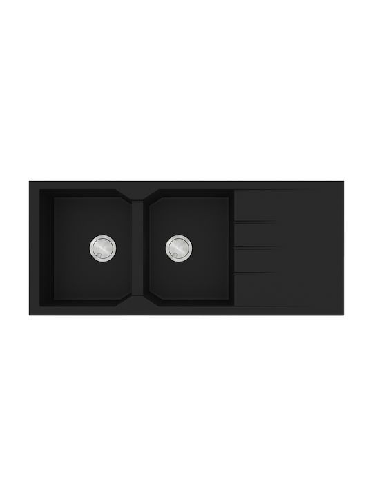Νεροχύτης Κουζίνας 116x50cm Ένθετος Ερμάριο 80cm δύο Γούρνες & Ποδιά Sanitec Ultra Granite 800-33-Nero