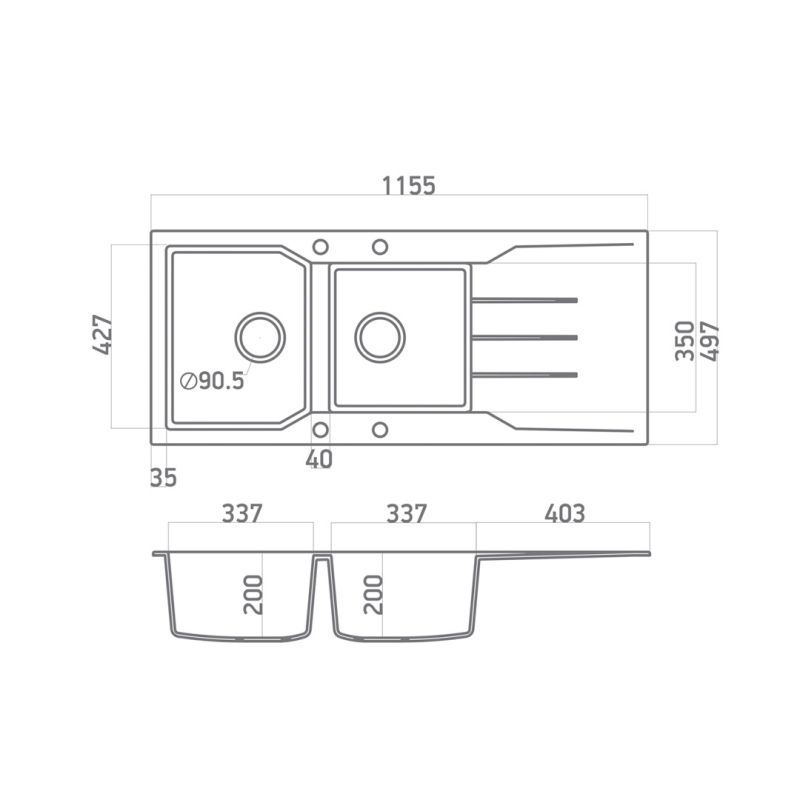 Εργονομικός αντιστρεφόμενος σχεδιασμός με 2 ανόμοιες γούρνες, επιφάνεια αποστράγγισης & άνετο περιθώριο για επιπλέον τοποθέτηση dispenser.