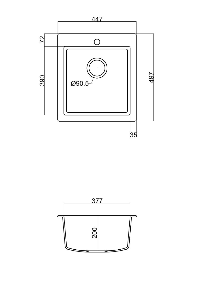 Εντοιχίζεται σε ερμάριο 45cm και συνοδεύεται από βαλβίδα αποχέτευσης με σύστημα υπερχείλισης & το αντίστοιχο σιφόν.