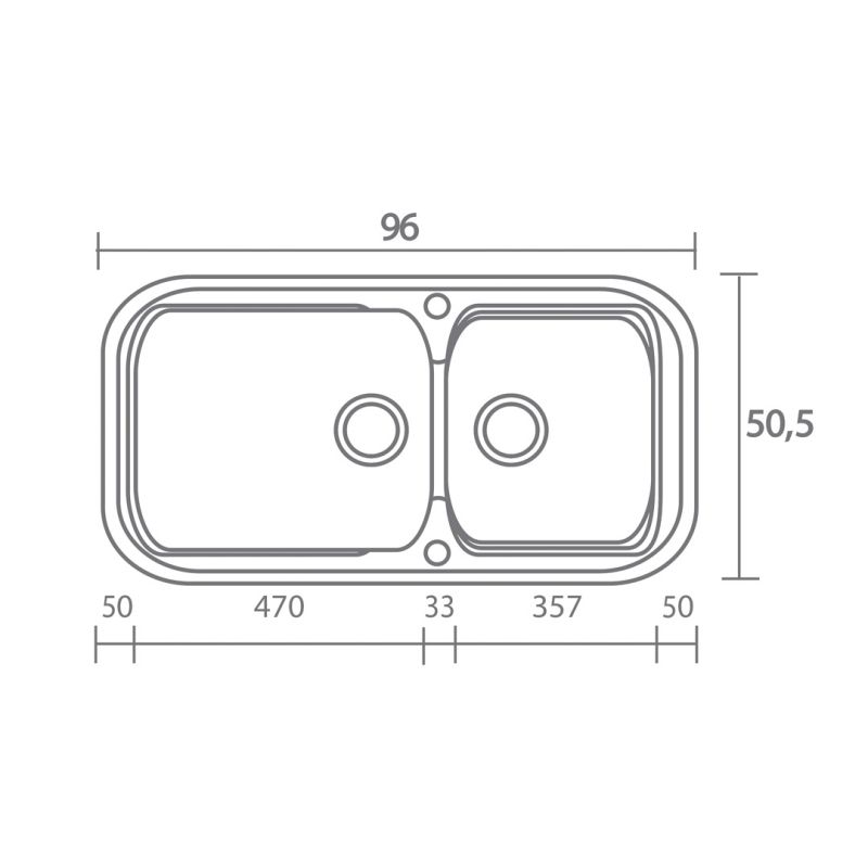 Περιγραφή: Νεροχύτης ένθετος αντιστρεφόμενος με 2 γούρνες