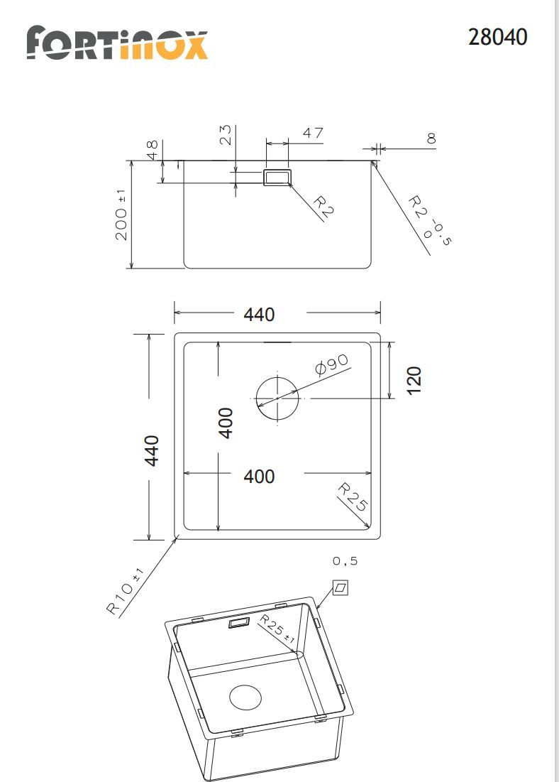 Νεροχύτης Κουζίνας Ανοξείδωτος Υποκαθήμενος Squadro 44x44 Fortinox Inox Λείο 28040-110