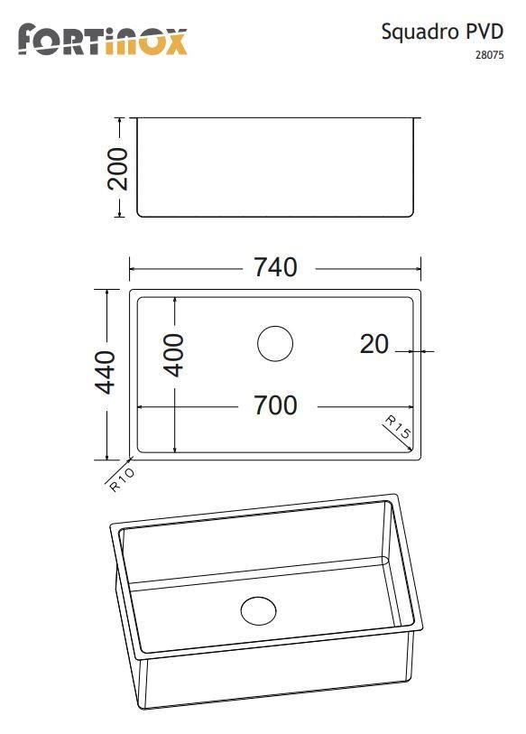 Νεροχύτης Υποκαθήμενος 74*44 εκ. Ανοξείδωτος Gold Brushed PVD Fortinox Squadro PVD 28075-211