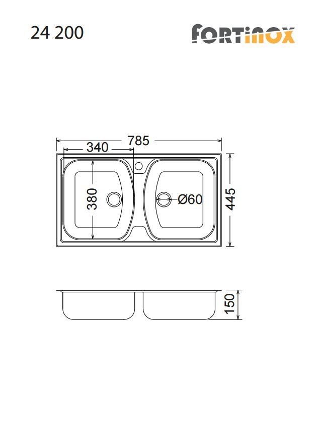 Νεροχύτης Κουζίνας Ανοξείδωτος Slender 78,5x44,5 Fortinox Inox Λείο 24200-110