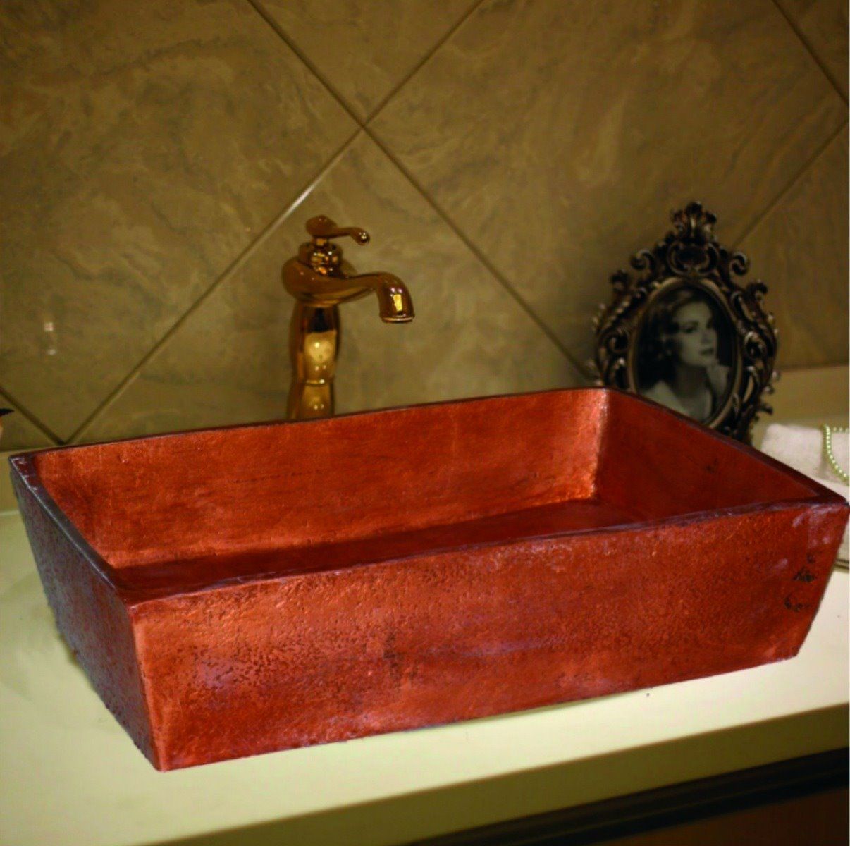 Νιπτήρας Επκαθήμενος Χειροποίητος 60*40*13,5 εκ. Χαλκός Παλαιωμένος Travertino "ΜΥΡΩΝΑΣ" 90039