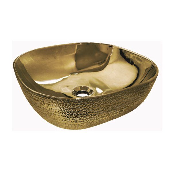 Νιπτήρας Κεραμικός Ετιτραπέζιος  42,5*42,5*14,5 εκ. Χρυσό εσωτερικά Χρυσό Κροκοδειλέ εξωτερικά Domistyle Luxury R1301B