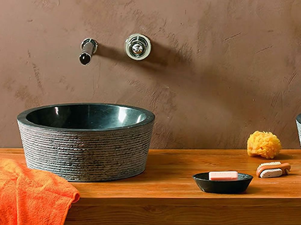 Νιπτήρας Πέτρινος Επιτραπέζιος Bati Jaya Μαύρο Ø40*15cm