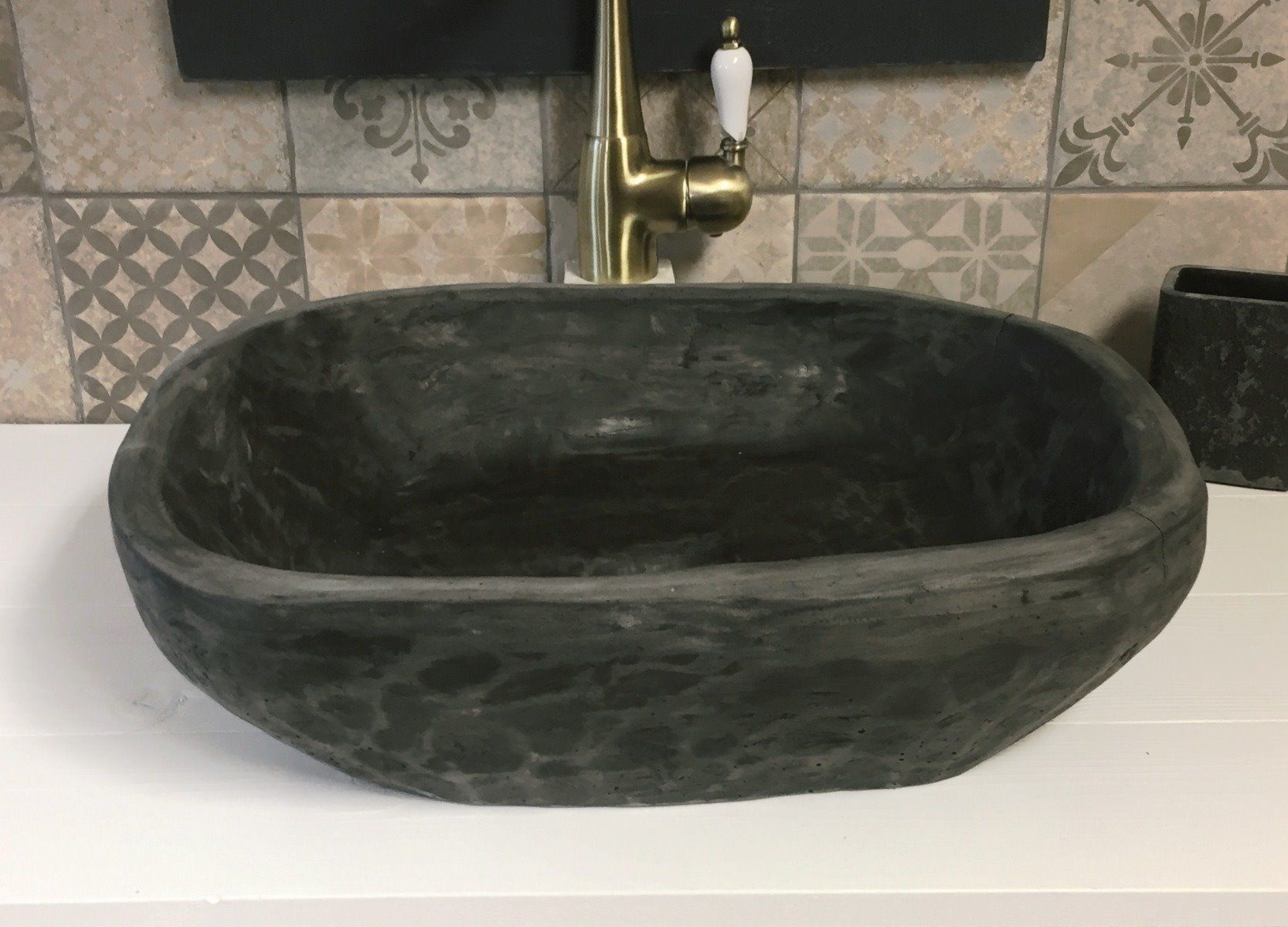 Νιπτήρας Χειροποίητος Επικαθήμενος 48,5*38*13,5 εκ. Μαύρος Travertino "ΑΤΛΑΣ" 90021