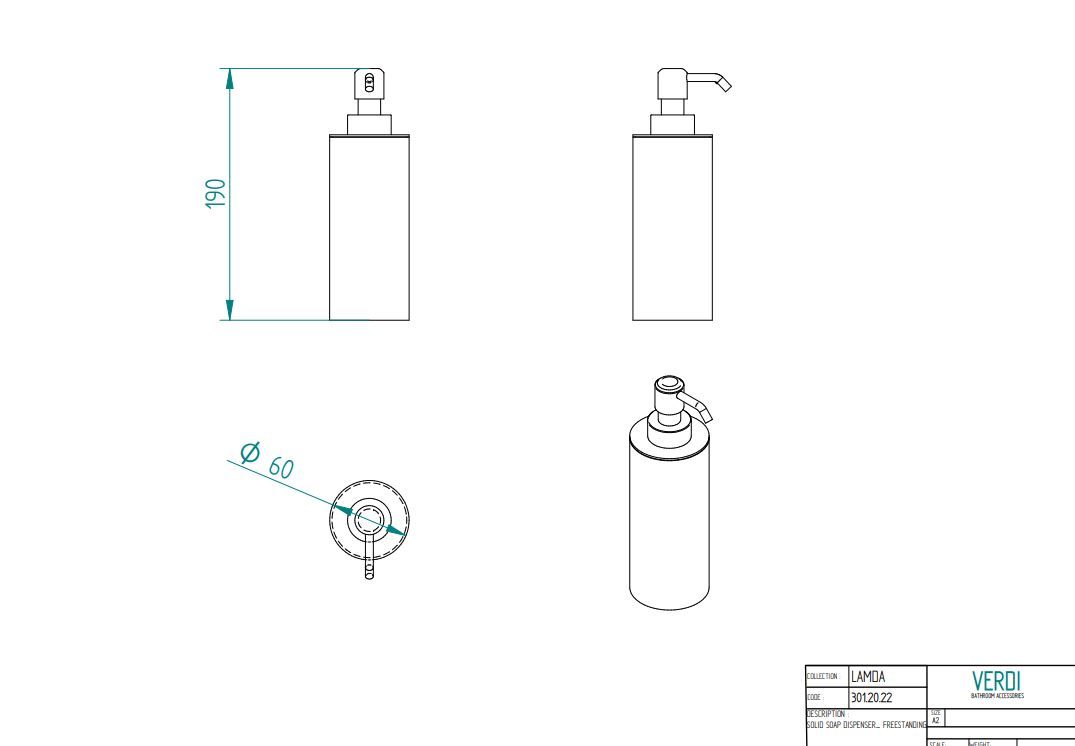 Ντισπένσερ Διανομέας Υγρού Σαπουνιού Επικαθήμενο W60xD60xH190mm Ορείχαλκος Χρωμέ Verdi Lamda 3012022