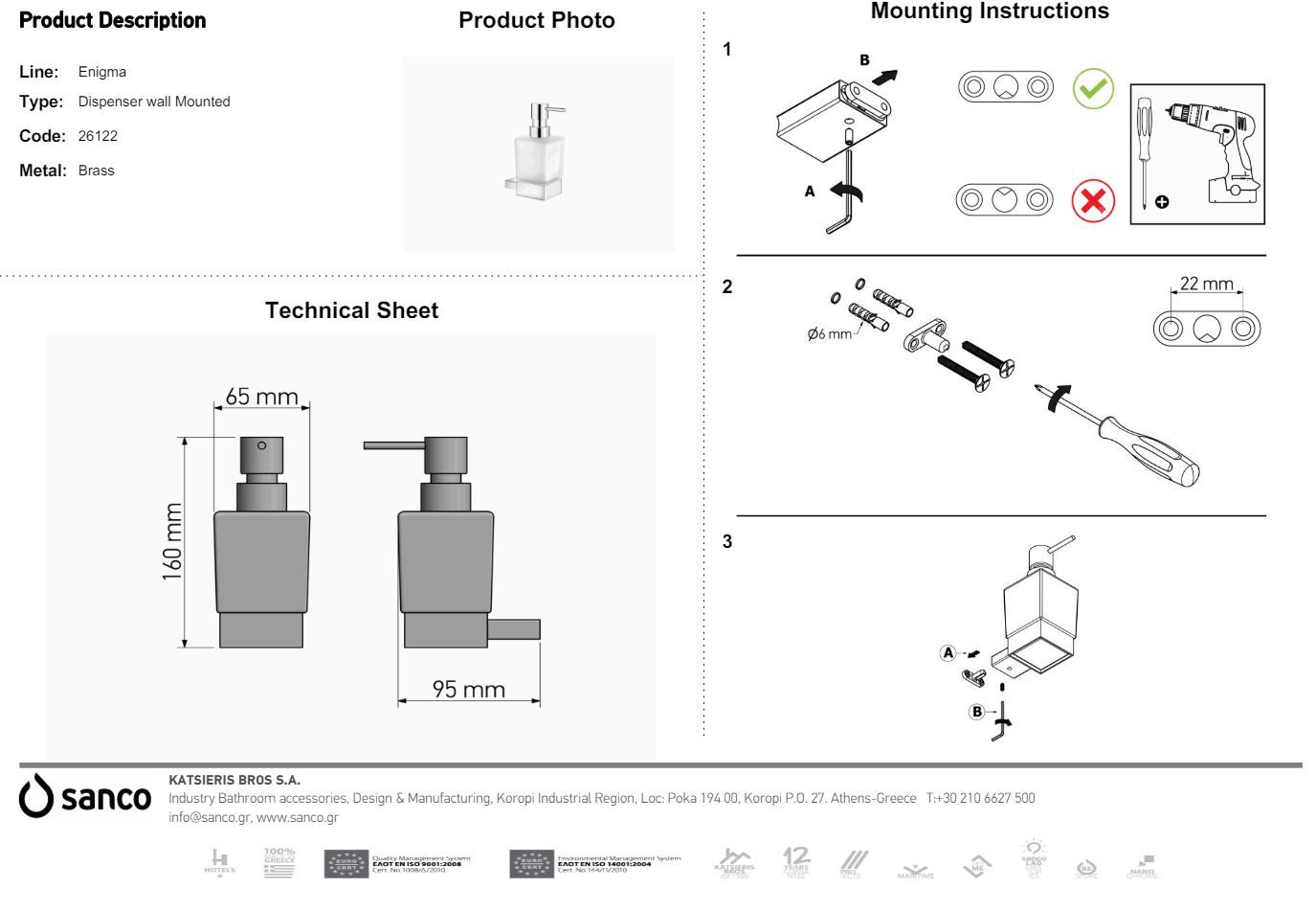Ντισπένσερ Επίτοιχο Μαύρο Ματ Sanco Enigma Black Matt 26122-M116Ειδική Τιμή 63,00 € Κανονική τιμή 70,00 €