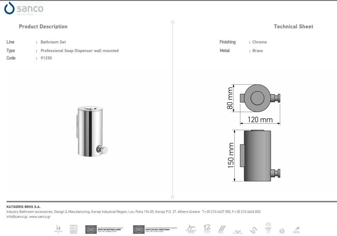Περιγραφή: Ντισπένσερ Επαγγελματικό Επίτοιχο