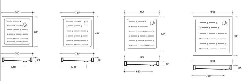 Ντουσιέρα Λευκή Πορσελάνη Τετράγωνη Μ80xΠ80xΥ12cm Colorado 08080