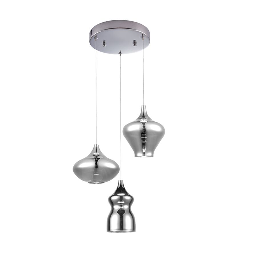 Κρεμαστό  πολύφωτο κατασκευασμένο από χειροποίητα γυαλιά και μεταλλική βάση σε χρώμιο.Ύψος: 120 εκ.Διάμετρος: 32,7 εκ.Λαμπτήρες: 3 τεμ.Τύπος Λαμπτήρα: LEDWatt: 3