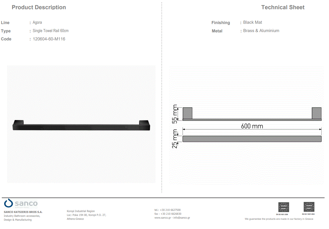 Πετσετοθήκη 60 εκ.Επιτοίχια Black Mat Sanco Agora 120604-60-M116Ειδική Τιμή 45,00 € Κανονική τιμή 50,00 €
