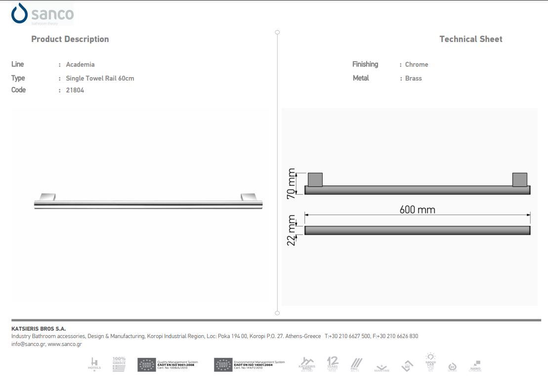Περιγραφή: Πετσετοκρεμάστρα Μονή 60 εκ.