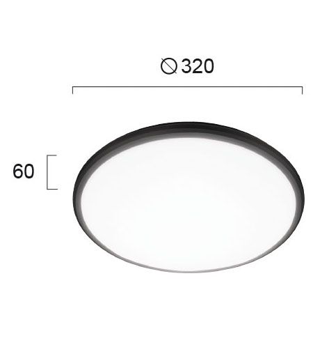 Πλαφόν Οροφής Ø32 cm Led 24w 3000K 1680lm IP54 Αλουμίνιο Μαύρο / Λευκό PC Diffuser Viokef Roni 4243000.