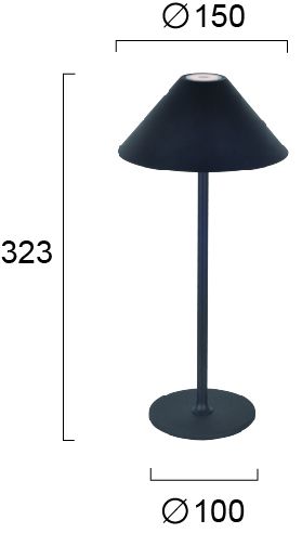 Πορτατίφ Ø150xH323mm IP44 Επαναφορτιζόμενο USB Led 3w 321lm 3000K Step Dimming Μαύρο Viokef Cone 4275201
