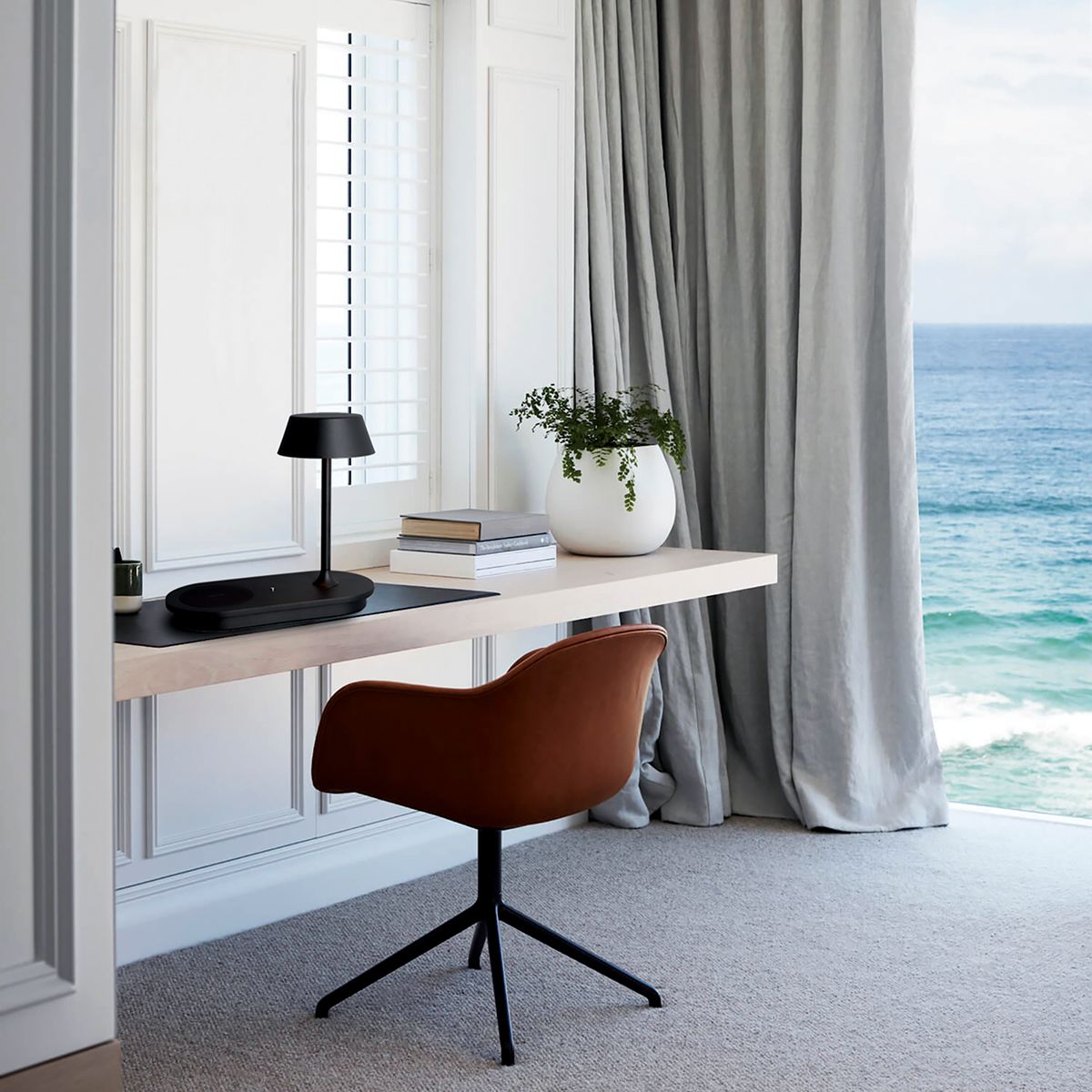 A metal lighting fixture in black, switch with step-dimmer, USB port, and smartphone wireless charger.