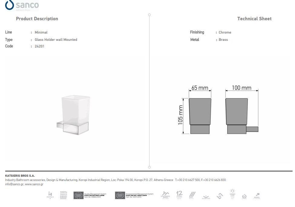 Ποτηροθήκη Επίτοιχη Sanco Minimal Graphite Dark 24201-122