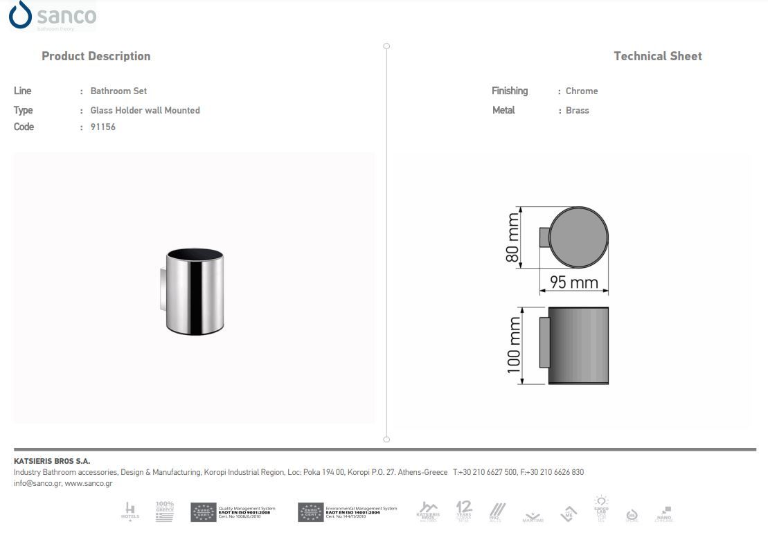 Ποτηροθήκη Επιτοίχια 8x9,5x10 cm Brass Chrome Sanco Metallic Bathroom Set 91156-A03