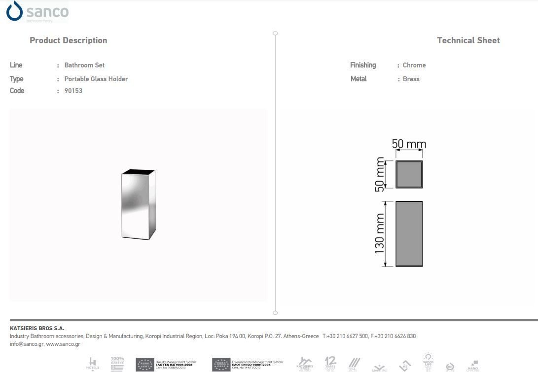 Ποτηροθήκη Επικαθήμενη 8x8x10 cm Brass Chrome Sanco Metallic Bathroom Set 90156-A03Ειδική Τιμή 27,00 € Κανονική τιμή 30,00 € -