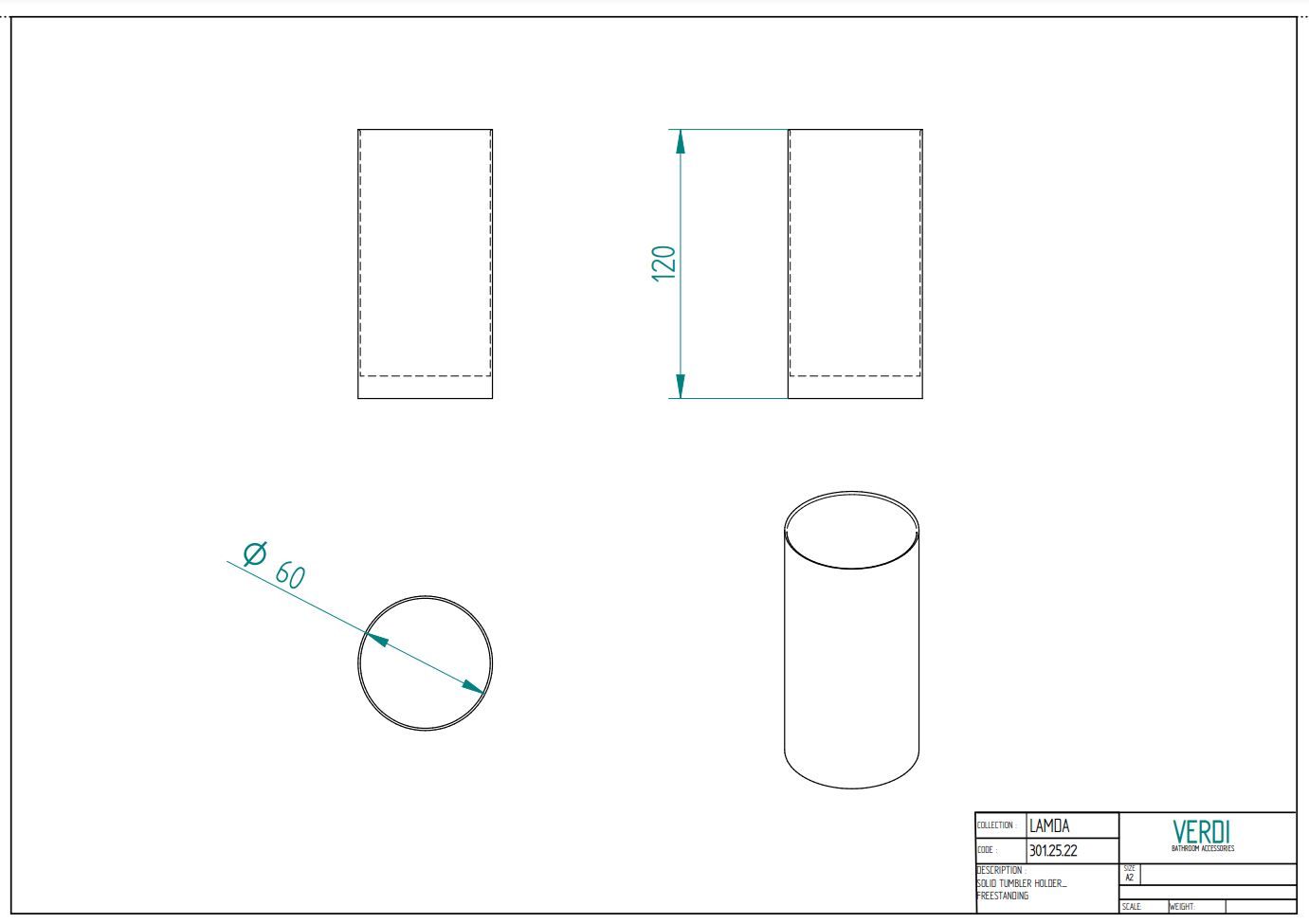 Ποτηροθήκη Μεταλλική Brass W60xD60xH120mm Verdi Lamda PVD Light Gold Brushed 3012542