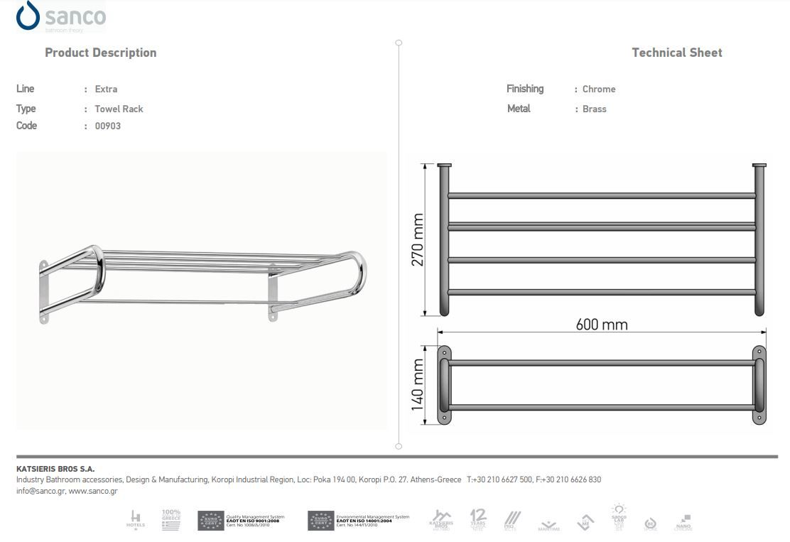 Sanco Α3-0903 Ραφιέρα Πετσετών 60εκ. Hotel Inspiration.