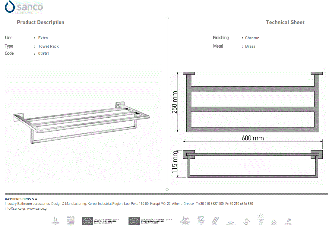 Ραφιέρα Πετσετών W60xD25xH11,5 εκ. Επίτοιχη Χρωμέ Sanco Towel Racks 0951-A03Ειδική Τιμή 112,50 € Κανονική τιμή 125,00 €
