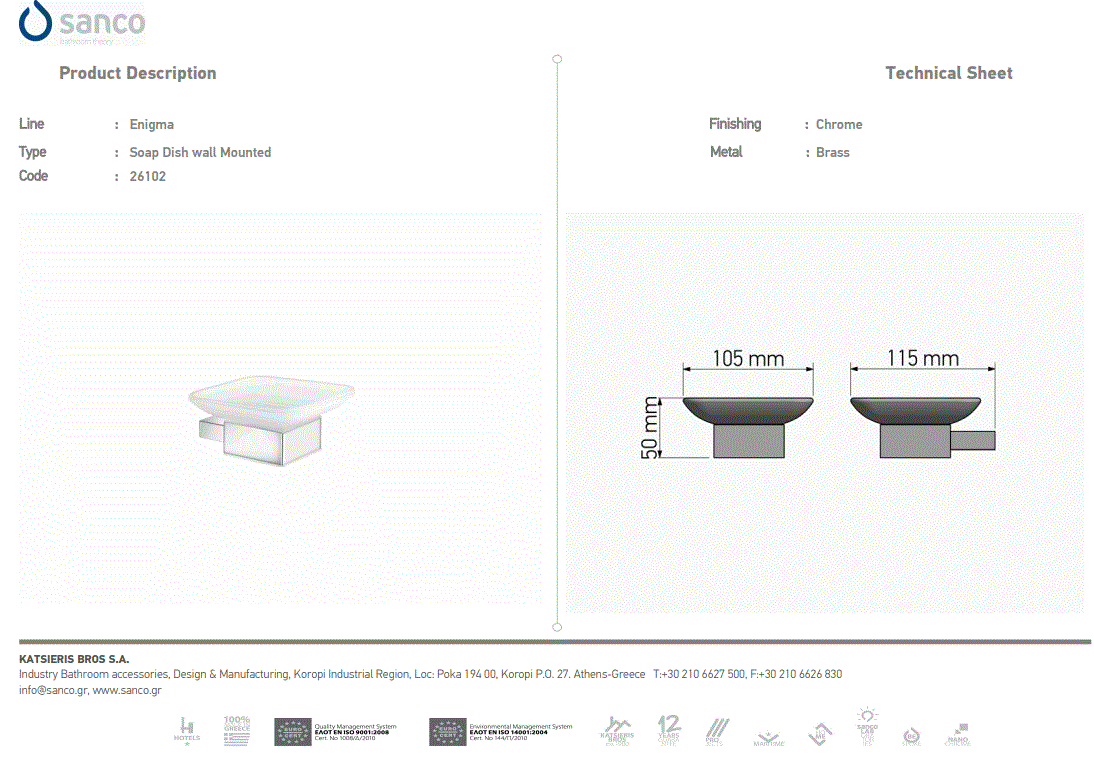 Σαπουνοθήκη Επίτοιχη Χρωμέ Sanco Enigma 26102-A03
