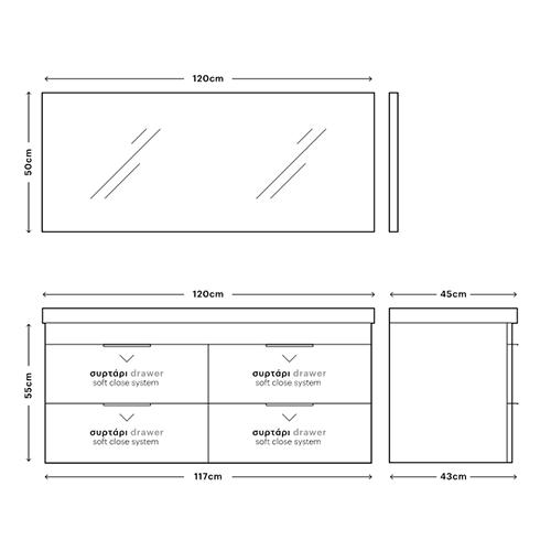 Διαστάσεις Βάσης Επίπλου: Π120*Υ55*Β43 cm