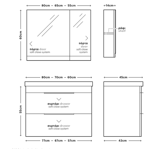 Το έπιπλο διατίθεται σε 60,70 & 80 εκ.