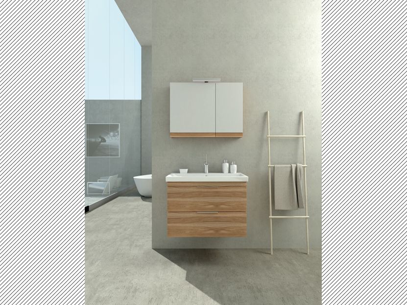 Σετ Έπιπλο Μπάνιου Βάση 70cm Χρώμα Πεύκο Λευκό -Νιπτήρας Ένθετος Linea-Καθρέπτης -Φωτιστικό Eva 2 Savvopoulos Economy Emily I-8010Ειδική Τιμή 350,00 € Κανονική τιμή 434,00 € -