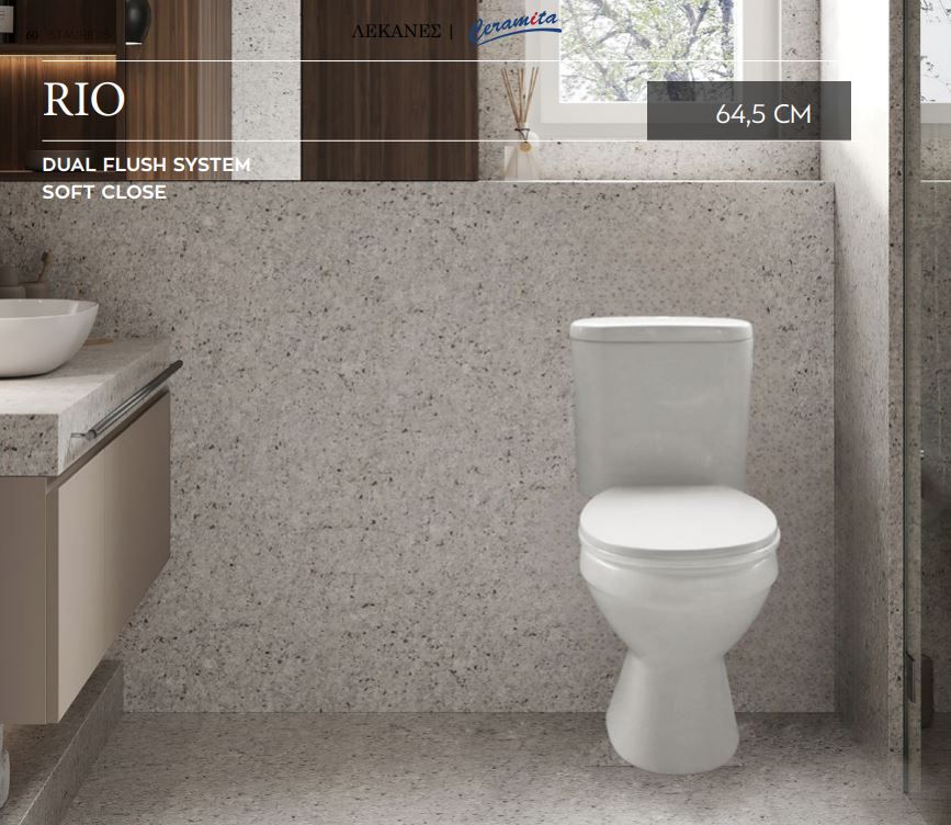 Σετ Λεκάνη Χ.Π Πισωστόμια Κομπλέ με κάλυμμα Soft Close Προβολή 64,5 εκ. Ceramita Rio P-TrapΕιδική Τιμή 160,00 € Κανονική τιμή 186,00 €