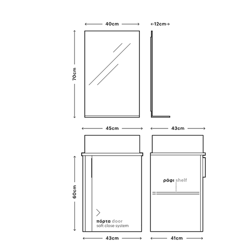Διαστάσεις Καθρέπτη: 45*70*12 εκ.