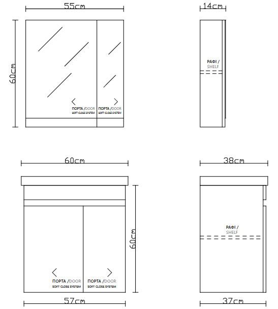 Διαστάσεις Καθρέπτη Ντουλάπι: Ύψος 60 εκ. Πλάτος 55 εκ. Βάθος 14 εκ.