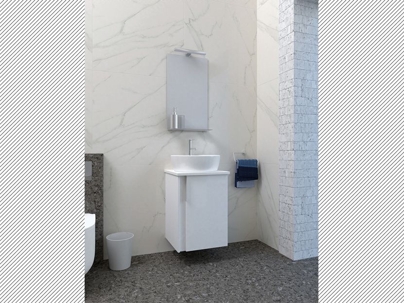 Το σετ Περιλαμβάνει: Βάση Επίπλου-Πάγκο-Νιπτήρα-Καθρέπτη-Φωτιστικό