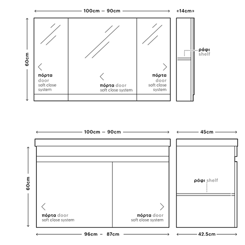 Διαστάσεις Καθρέπτη με ράφι: 90*60*14 εκ.