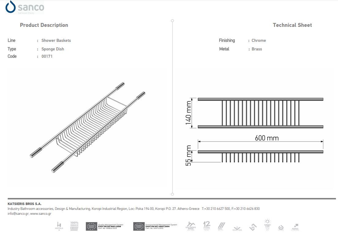 Σπογγοθήκη Μπανιέρας Ρυθμιζόμενη W70xD14xH5,5cm Χρωμέ Sanco Shower Baskets 0151-A03Ειδική Τιμή 198,00 € Κανονική τιμή 220,00 €