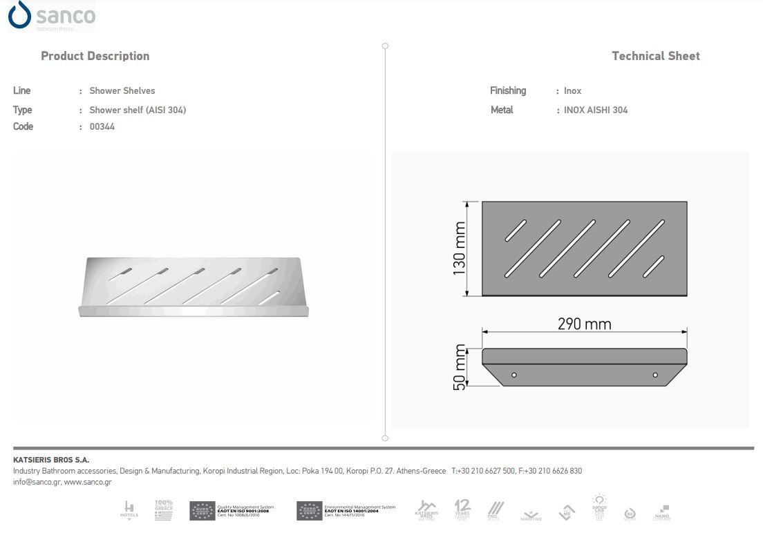 Σπογγοθήκη-Ραφιέρα Επιτοίχια W29xD13xH5cm Inox Aishi 304 Sanco Shower Shelves 0344-A90 Σπογγοθήκη-Ραφιέρα Επιτοίχια W29xD13xH5cm Inox Aishi 304 Sanco Shower Shelves 0344-A90