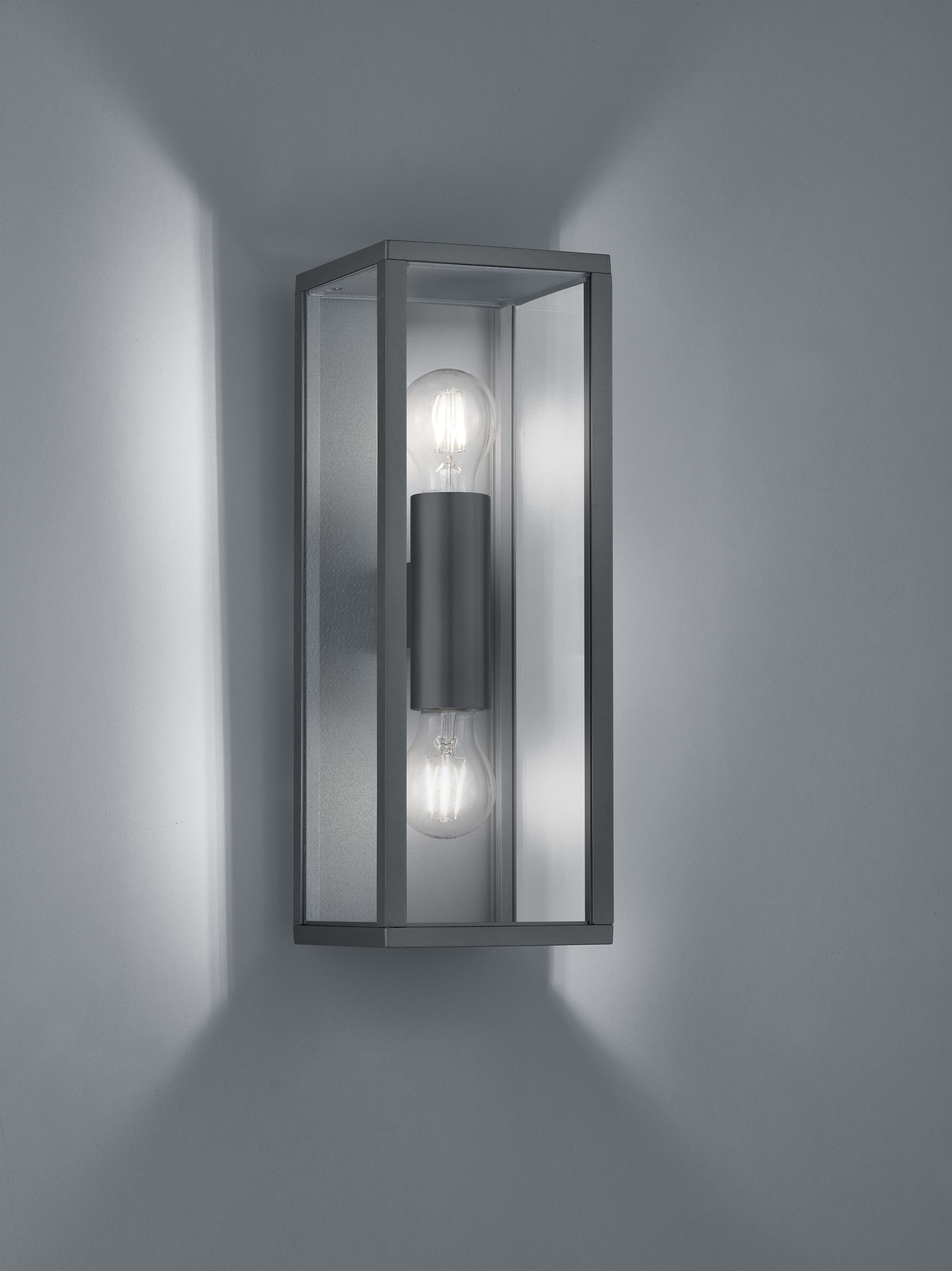 In addition to the right decorations, the perfect ambience in the outdoor area requires beautiful lighting. Our GARONNE series goes perfectly with straight-lined outdoor furniture and provides pleasant lighting and a perfect ambience for relaxed summer evenings - whether a well-lit entrance area, path to the house or garden or simply a simple wall and ceiling light for the balcony. Thanks to its IP44 protection rating, the 38 x 14 cm wall light is ideal for illuminating your outdoor area. The anthracite-coloured die-cast aluminium supports the linear design and represents a stylish combination with modern elements in the outdoor area. For energy-saving lighting, it is recommended to use an LED illuminant. These are an optimal alternative to conventional halogen lamps and stand for a high quality of light and energy savings of up to 80%. In addition, LED lamps help you benefit from a long service life, low heat generation and at the same time protect the environment.
