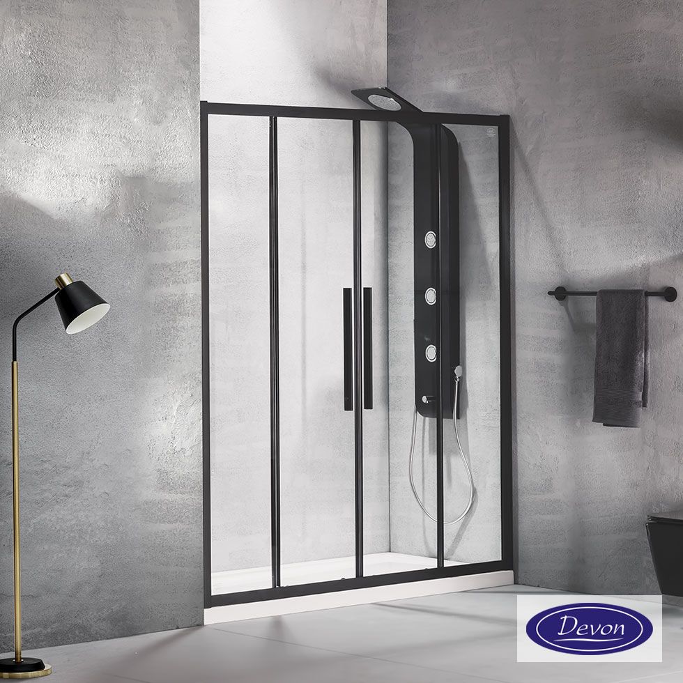 Συρόμενη διπλή πόρτα καμπίνας ντουζιέρας Flow 170 ύψους 195εκ. ρυθμιζόμενη από 167 έως 171εκ. Devon Clean Glass Black Matt SL2F170C-400Ειδική Τιμή 370,00 € Κανονική τιμή 458,80 €