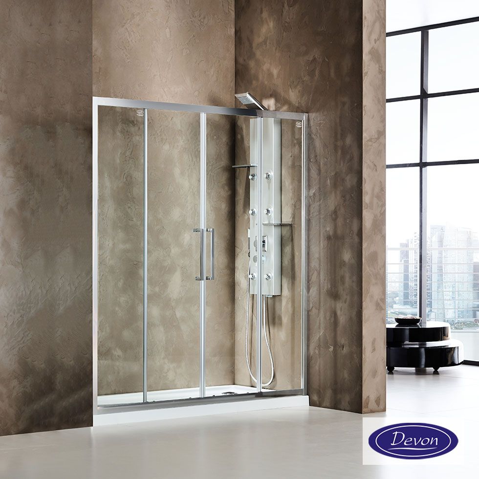 Συρόμενη διπλή πόρτα καμπίνας ντουζιέρας Primus Plus 150 ύψους 195εκ. ρυθμιζόμενη από 147 έως 151εκ. Devon Clean Glass Chrome SL2T150C-100
