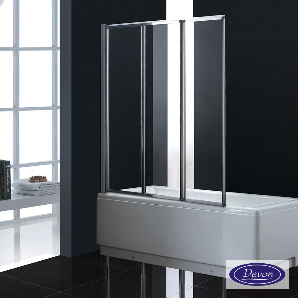 Τρίπτυχο διαχωριστικό μπανιέρας 120εκ. Ύψους 140εκ., Devon Clear Chrome DT1200T-100