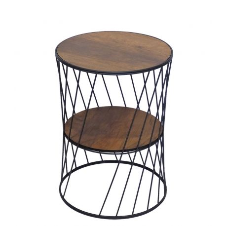 Βοηθητικό τραπεζάκι ΚΥΛΙΝΔΡΙΚΟ με μεταλλικό σκελετό μαύρο και καφέ ξύλινη επιφάνεια.