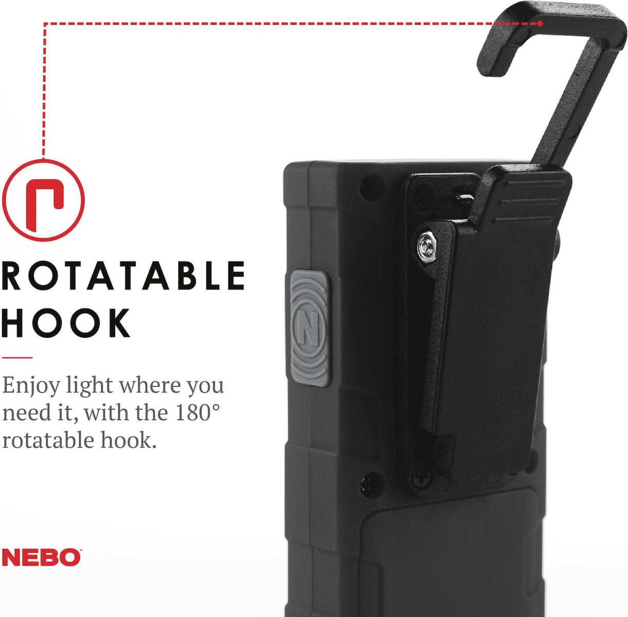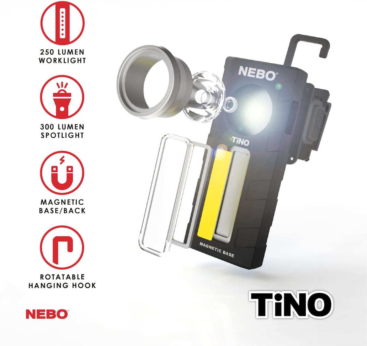 Equipped with full dimming and Power Memory Recall, the TiNo also features a pocket clip, collapsible hanging hook, and powerful magnetic base for convenient hands-free lighting.