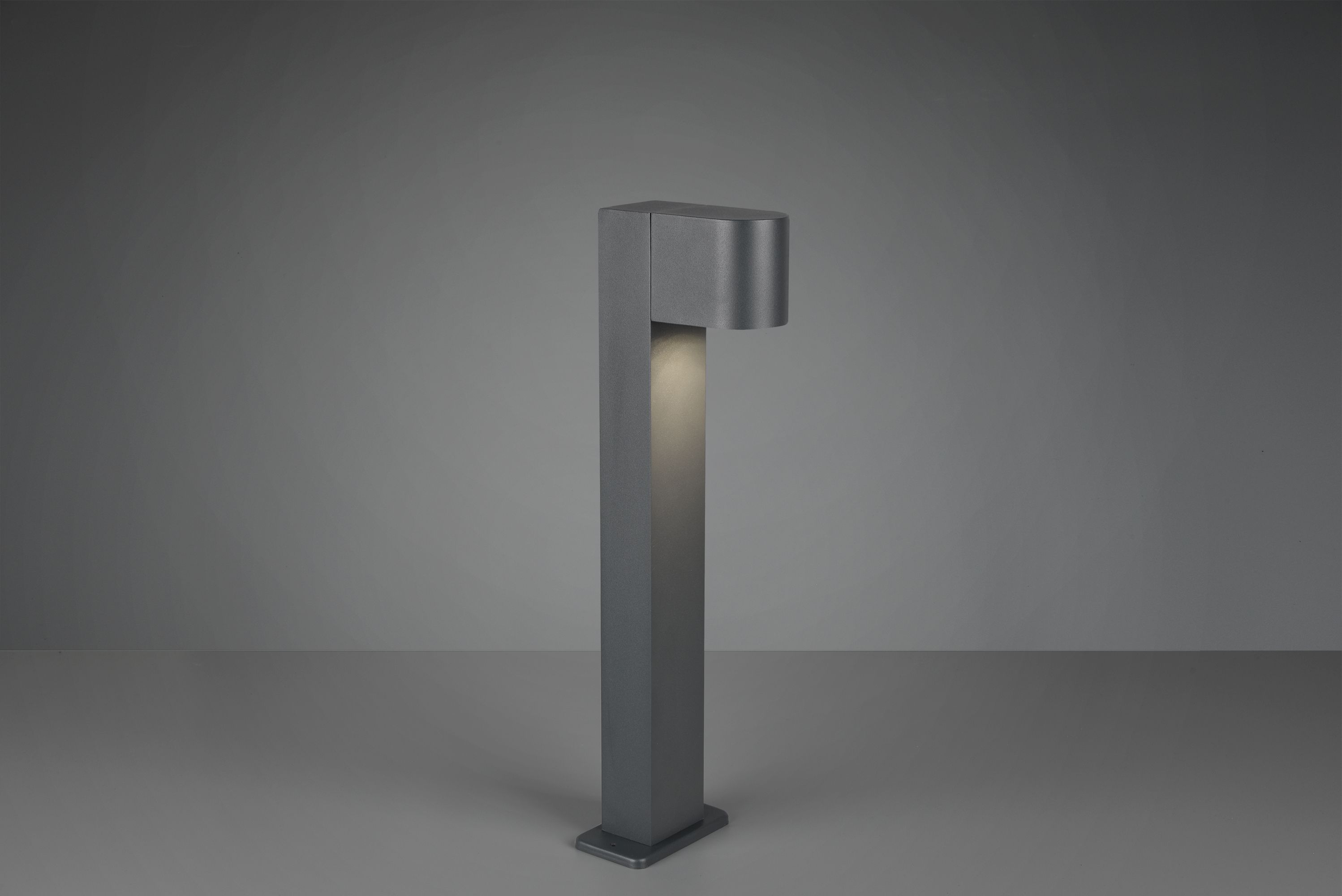 Κολωνάκι φωτισμού της Trio Lighting σε γκρι χρώμα, για χρήση σε εξωτερικούς χώρους. Διαθέτει βαθμό προστασίας IP44, που δηλώνει ότι δεν μπορούν να εισχωρήσουν στερεά αντικείμενα άνω του ενός χιλιοστού αλλά ούτε και νερό με μεγάλη ένταση. Εκπέμπει θερμό λευκό φως που αποδίδεται στην κλίμακα Kelvin με τιμές από 2400Κ έως 3800Κ. Αυτοί οι τόνοι του λευκού είναι πιο κίτρινοι σε σχέση με το φυσικό φως.