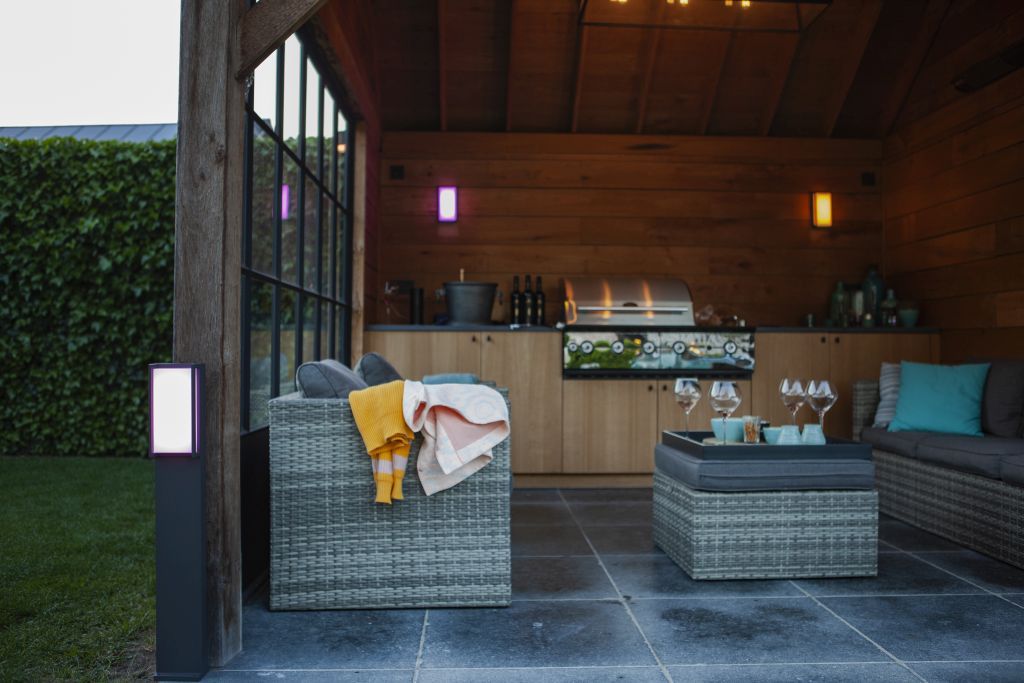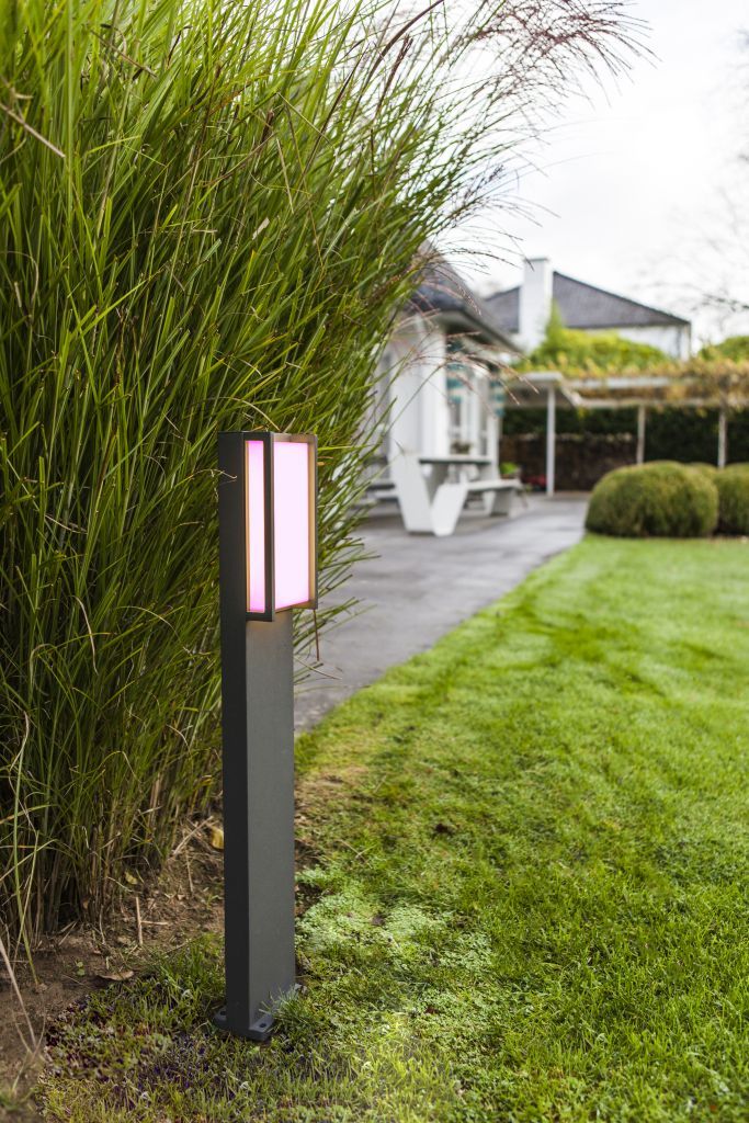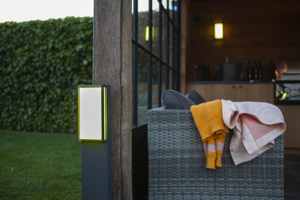 QUBO dark grey bollard diffuses a stunning homogenous connected light. Ideal for general lighting in your garden or terrace.