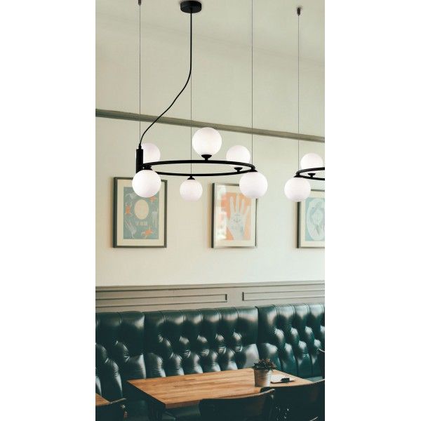 Φωτιστικό Κρεμαστό Εξάφωτο 6*G9 Μαύρο Μέταλλο /Γυαλί Οπάλ Σατινάτο Viokef Fancy 4208500
