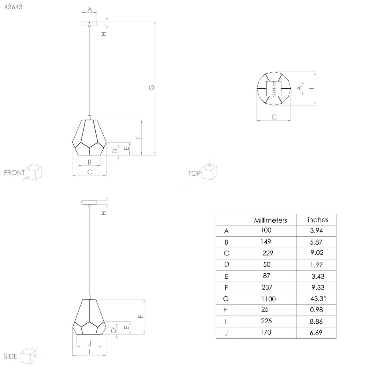 Φωτιστικό Κρεμαστό Μονόφωτο Ø230xH1100mm 1xE27 Μαύρο Μέταλλο-Γυαλί Eglo Mardyke 43643